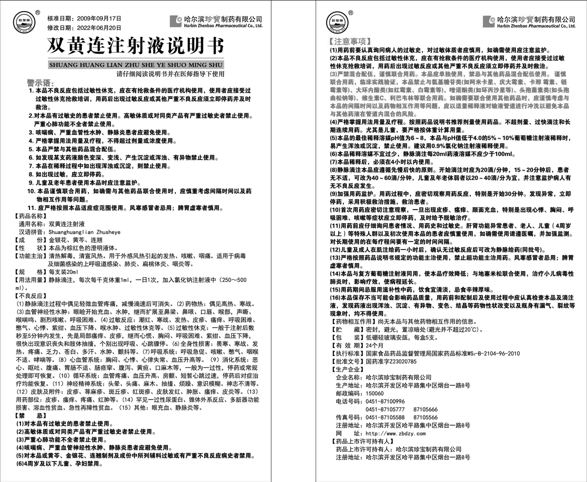 產品名稱:雙黃連注射液